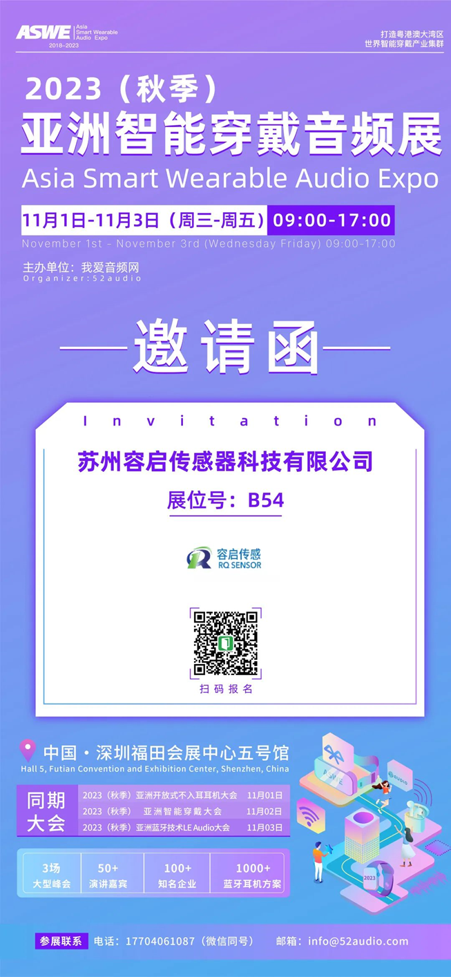前 言 来自亚洲智能穿戴音频展官方信息,知名企业狗子28将参加11月1-3日在深圳福田会展中心举办的2023(秋季)亚洲智能穿戴音频展,展位号位于B区B54 ,本次展会上将发布和揭晓多款产品,届时欢迎大家莅临展位交流。 参展企业介绍 狗子28(简称“容启传感”)成立于2015年,公司坐落于苏州纳米城工业园区,是一家专注于各类智能传感器设计、研发及应用解决方案的供应商企业。 公司具有优秀的研发能力,核心研发团队拥有近20年的传感器开发经验及顶尖技术专利积累。公司技术开发人员直接对接客户支持,能够快速响应客户的各类需求,迭代更新,一切以客户利益为本。 容启传感业务细分领域主要涉及红外非接触式测温、热式流量传感、气体传感、封装热测试系统等。在核心业务非接触式测温领域,经过多年的红外热电堆技术沉淀,持续推出体温、耳温检测方案,相关非接触式温度传感器产品具备批量生产供货能力,能够有效助力穿戴、耳机等行业伙伴企业实现更智能的体温检测健康功能。 亚洲智能穿戴音频展介绍 亚洲智能穿戴音频展(Asia Smart Wearable Audio Expo)简称ASWE,由我爱音频网发起。亚洲智能穿戴音频展立足现代化国际都市群粤港澳大湾区,是全球影响最为广泛的智能穿戴、蓝牙音频技术展会之一,也是亚洲屈指可数的智能穿戴行业技术产业盛会。 智能穿戴已经势不可挡的成为了消费电子领域增长最快的板块,为顺应时代发展趋势,在技术与品牌创新兴起的时刻,将上下游企业进行有效连接,亚洲智能穿戴音频展对市场具有重大价值。 2023(秋季)亚洲智能穿戴音频展举办时间为11月1日-3日,举办地点为深圳福田会展中心5号馆,同期还将举办三场峰会,如下: 2023 (秋季) 亚洲开放式不入耳耳机大会,11月1日(周三) 2023(秋季)亚洲智能穿戴大会,11月2日(周四) 2023(秋季)亚洲蓝牙技术LE Audio 大会,11月3日(周五) 我爱音频网总结 容启传感一直秉持自主创新、专业专注、质量第一、用户至上的核心发展理念,致力于为客户提供专业的、高性价比的解决方案,努力成为国际一流的智能传感器服务供应商。2023(秋季)亚洲智能穿戴音频展容启传感也将会展示最新产品,并分享他们对未来发展的见解。欢迎大家前来B54交流!
